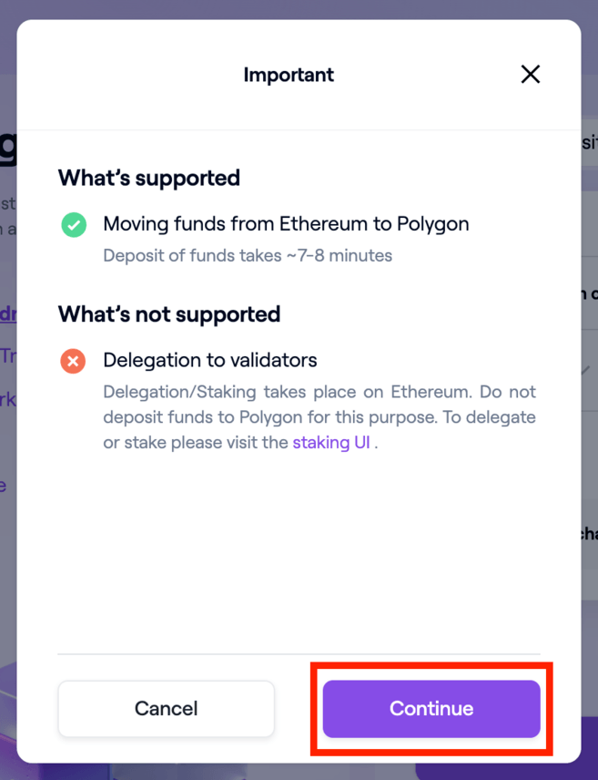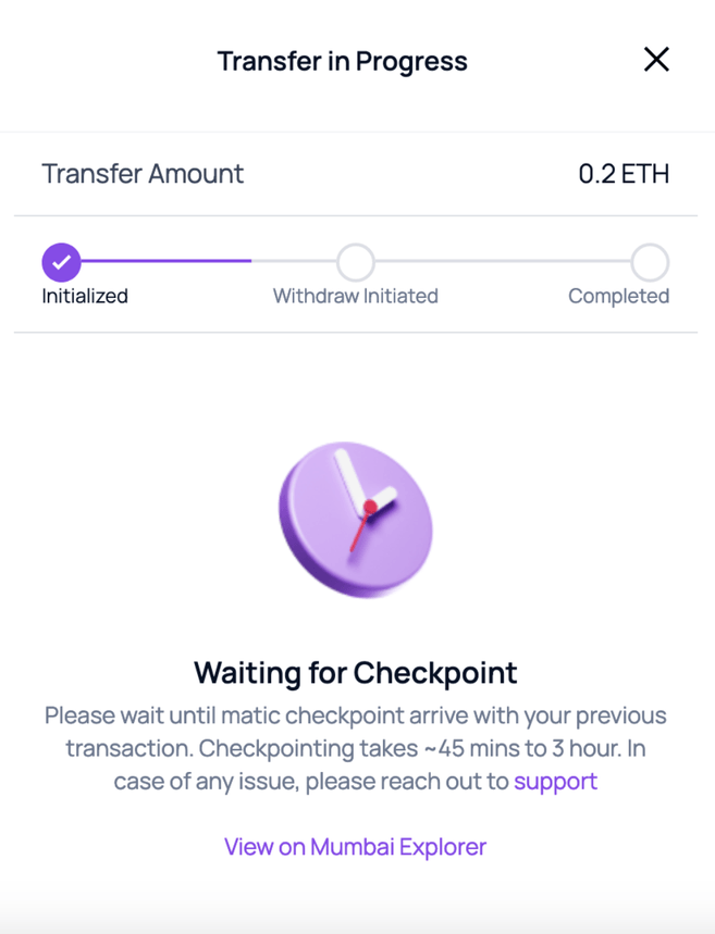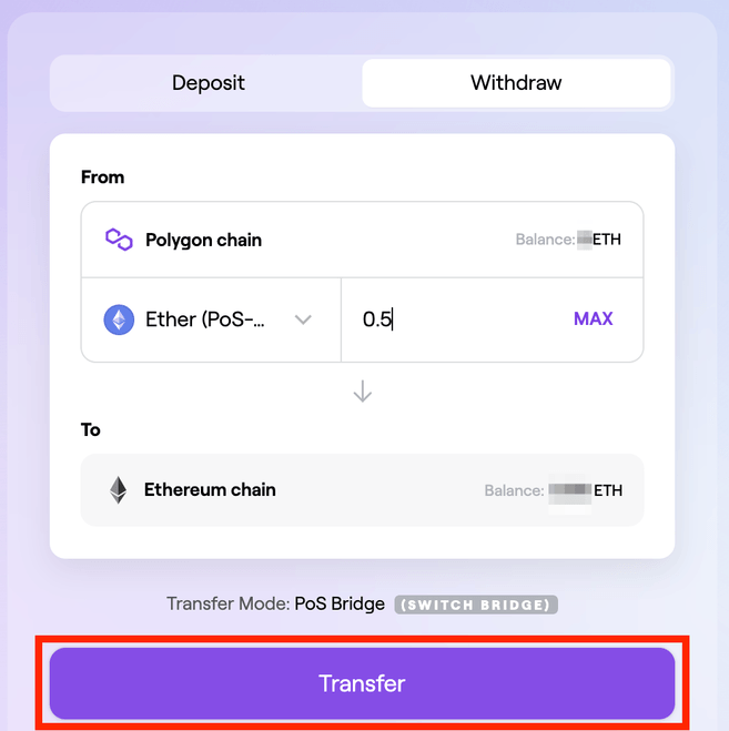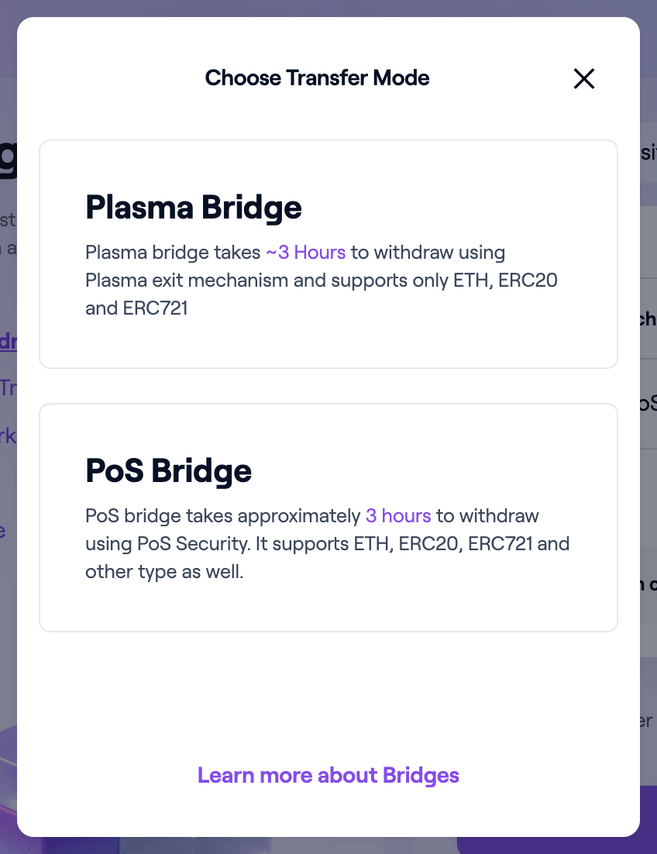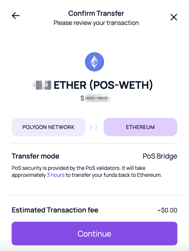 Zauważ, że most PoS jest zabezpieczony przez weryfikatorów. Jeśli zdecydujesz się przenieść środki z powrotem do sieci Ethereum, może to zająć do 3 godzin.