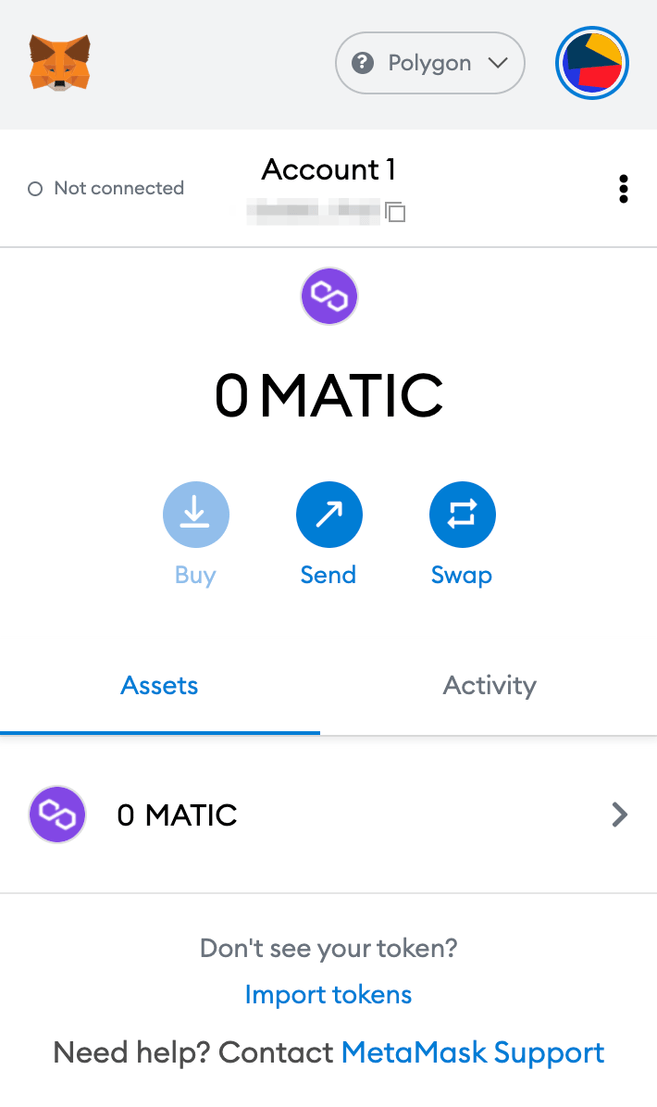 4. Teraz możesz zobaczyć MATIC w swoim portfelu MetaMask.