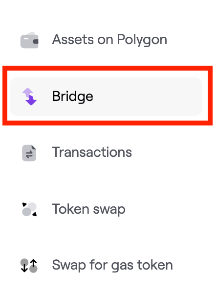 4. Powinieneś zostać przekierowany do interfejsu Mostu Polygon. Jeśli nie, kliknij [Most] w lewym menu.