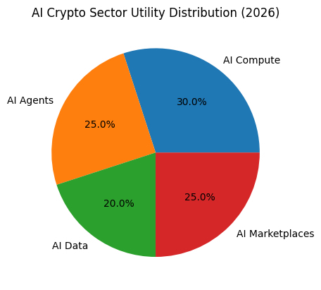 The pie chart above shows how the AI crypto sector is distributed across different utility areas in 2026. AI Compute and AI Networks hold the largest share of the sector, indicating strong demand for infrastructure and decentralized AI training systems. AI Agents follow closely, reflecting growth in automation and smart autonomous systems. AI Data represents a smaller but essential portion, as data remains the foundation for AI model development.