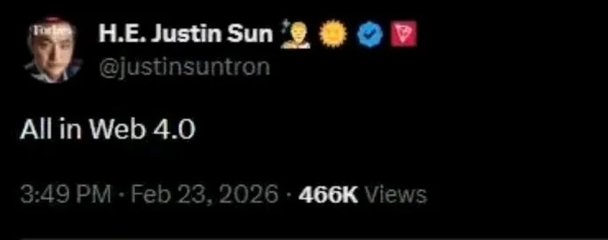 @Justin Sun孙宇晨 Zdanie „All in Web 4.0” natychmiast rozpaliło dyskusję w całym kręgu technologii.