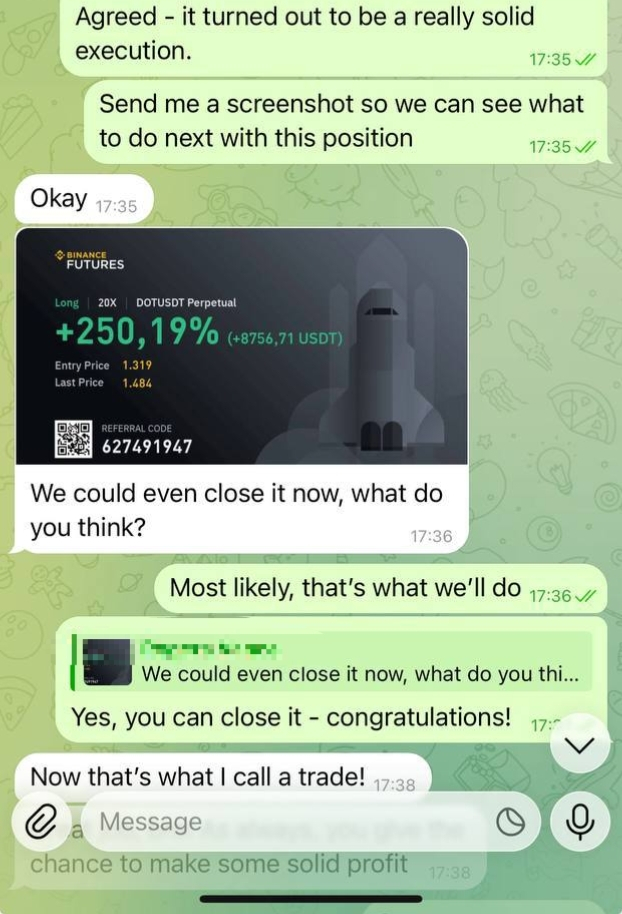 Gdy transakcja zaczęła się poruszać na naszą korzyść, emocje mogły łatwo przejąć kontrolę. Gdy widzisz silne zielone liczby, chciwość zaczyna szeptać: „Trzymaj więcej... może pójdzie wyżej.”