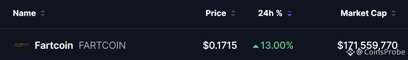 FARTCOIN has surged around 13% amid a broader crypto market rebound led by Bitcoin and Ethereum.