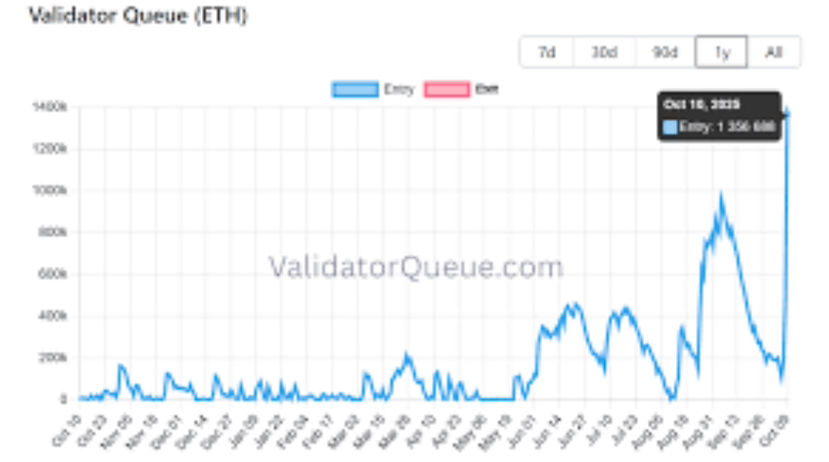 This graph tracks Ethereum’s validator entry queue over time, reflecting growing participation: