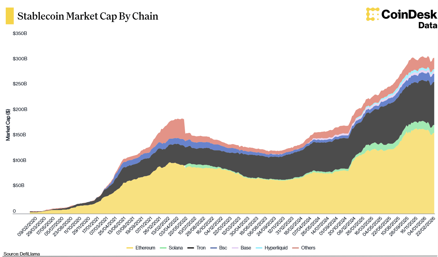 However, beneath this price action lies a much stronger foundation than in previous cycles. The total stablecoin market capitalization has surpassed $300 billion, representing a sixfold increase from early 2020 levels. Stablecoins have become a core liquidity layer of the crypto ecosystem, acting as a bridge between traditional finance and blockchain-based markets.
