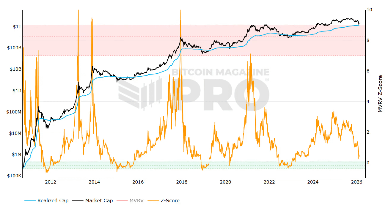 W przypadku rynku kryptowalutowego konkretne metryki on-chain mogą dostarczyć dodatkowych wskazówek. Wskaźnik wartości rynkowej do zrealizowanej wartości (MVRV) Z-score to narzędzie często używane do znajdowania minimów rynku dla Bitcoina, skutecznie kwantyfikujące, ile niezrealizowanego zysku aktualni posiadacze mają na koncie i jak daleko to odbiega od historycznych norm. Inne potencjalnie przydatne metryki to zachowanie długoterminowych posiadaczy, które można śledzić poprzez rozkład wieku monet, oraz zdrowie górników, które można monitorować za pomocą Hash Ribbons.
