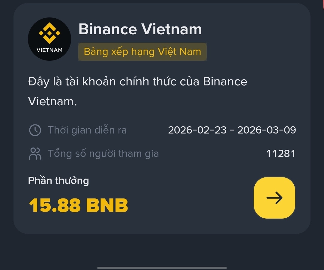 Hiện tại cộng đồng Việt Nam đang có một event chia thưởng tổng cộng 15,88 BNB. Đây không phải dạng quay số may mắn mà là chương trình tính điểm dựa trên mức độ tham gia: theo dõi, đăng bài và giao dịch để tích lũy điểm xếp hạng.