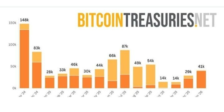 According to a recent bitcointreasuries.net report, companies added roughly 43,200 BTC in January, with Strategy contributing about 40,150 BTC.