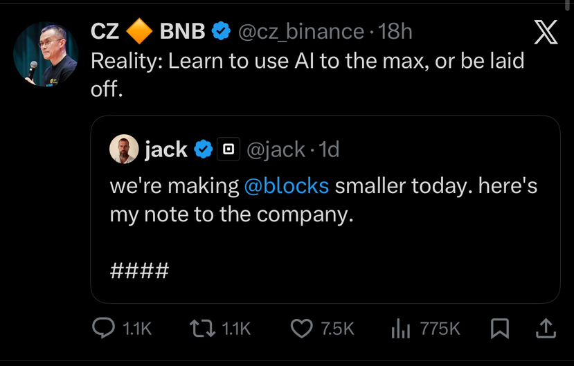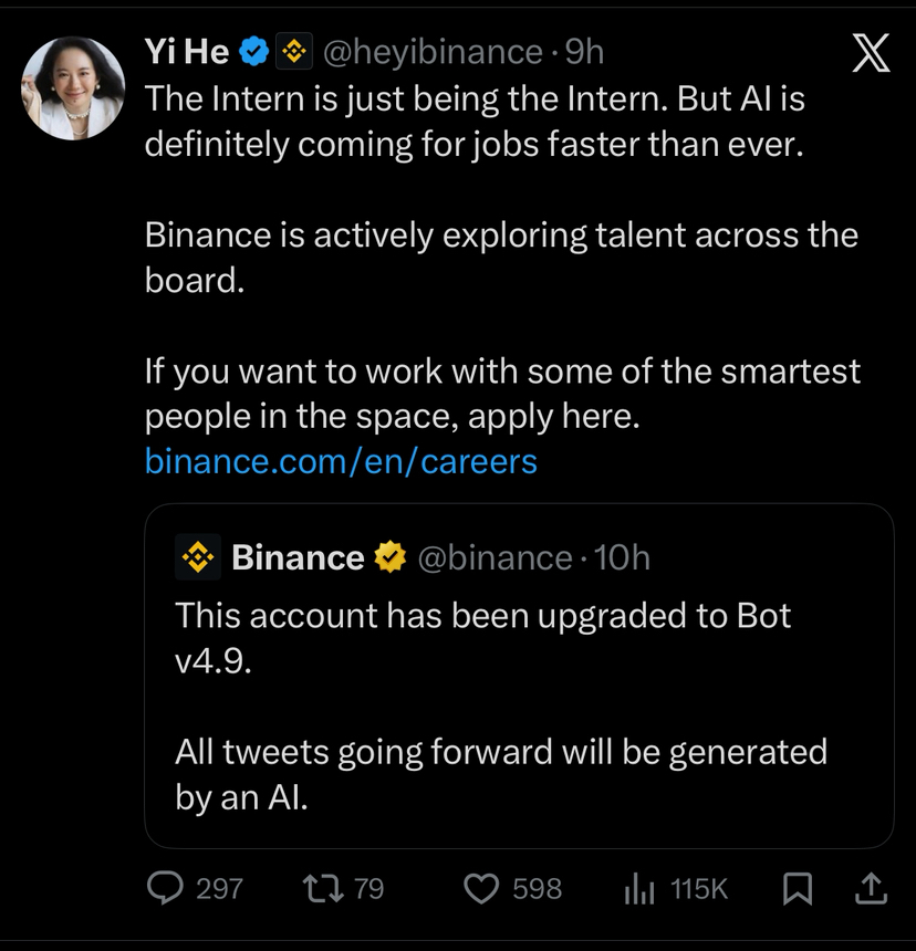 I am sure you have seen the tweets by Ye hi and CZ regarding Ai taking over jobs.