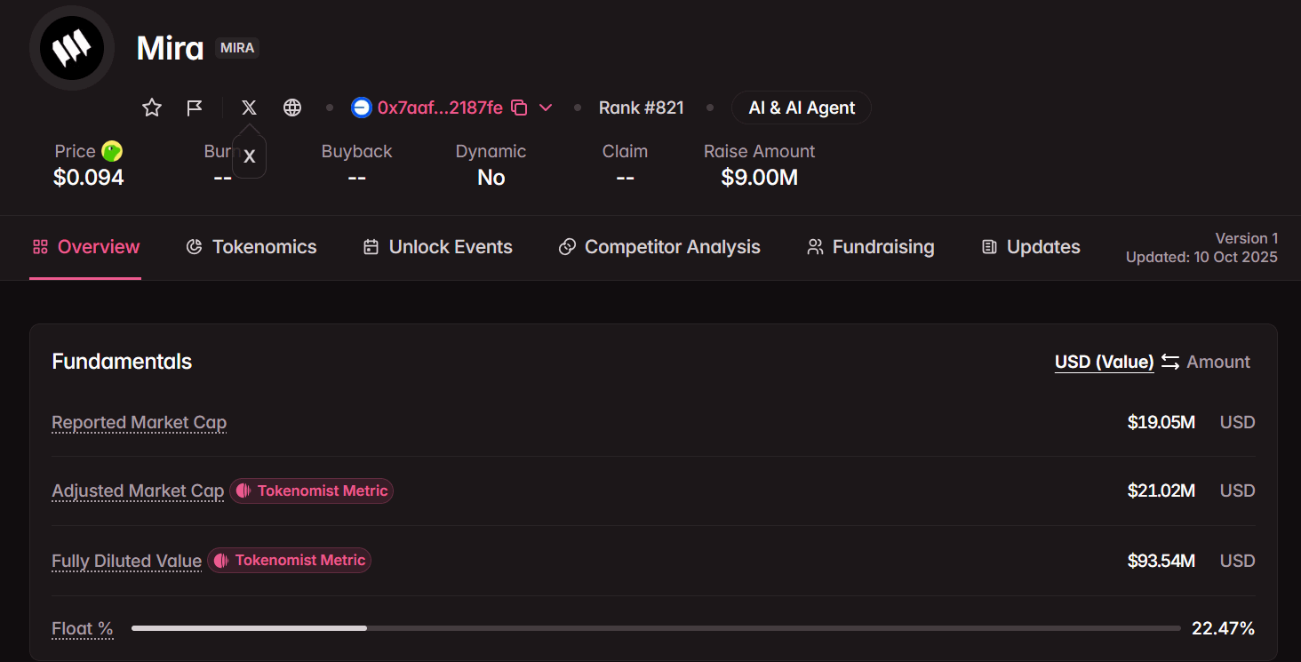 MIRA serves as the core utility token in the ecosystem: