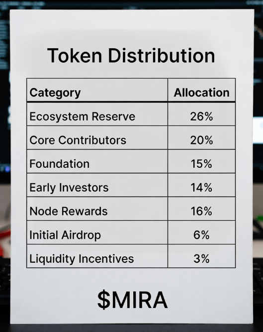 The MIRA token is the native cryptocurrency of the Mira Network; a decentralized AI verification protocol built on the Base blockchain. It powers network security via a hybrid Proof-of-Work (honest inference) and Proof-of-Stake model, enabling reliable AI outputs through consensus mechanisms and staking incentives. Tokenomics emphasize community ownership, with the motto that "the network belongs to those who use it, build on it, and secure it."