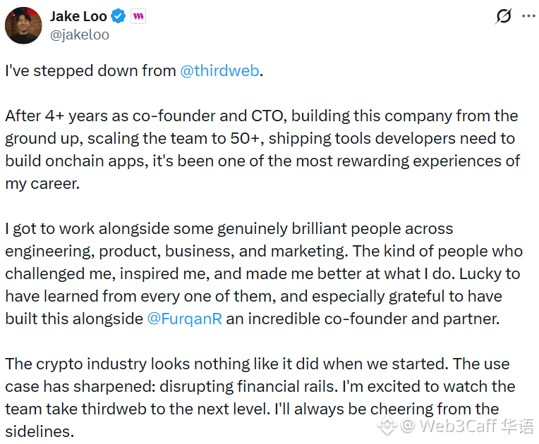 Web3 开发工具平台 thirdweb 联创兼 CTO 卸任职位