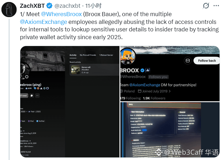 ZachXBT 曝光 Axiom 多名员工涉嫌利用内部工具进行内幕交易