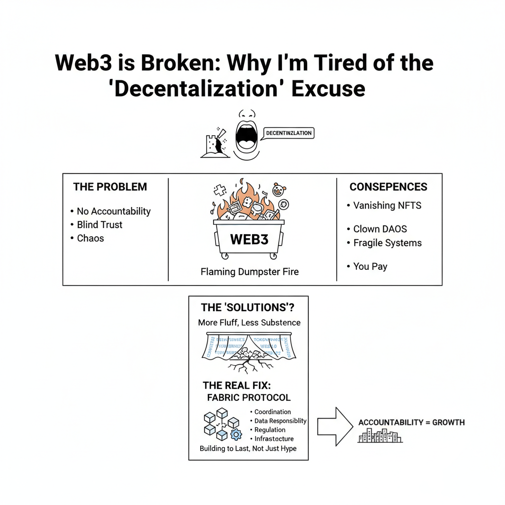 Honestly, if I hear the word "decentralization" one more time without a real plan behind it, I might scream. Everyone is so obsessed with the idea of Web3—true ownership, cutting out the middlemen, building the future—that they completely ignore the massive, flaming dumpster fire in the room: absolutely zero accountability.