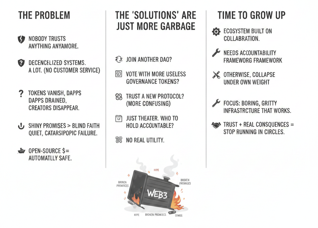We’ve spent the last few years drowning in buzzwords—ownership, innovation, freedom—while ignoring the massive, burning dumpster fire in the room: nobody trusts anything anymore. And frankly, they shouldn’t. We’ve become so obsessed with the idea of taking down the middlemen that we forgot to actually build something reliable in their place.