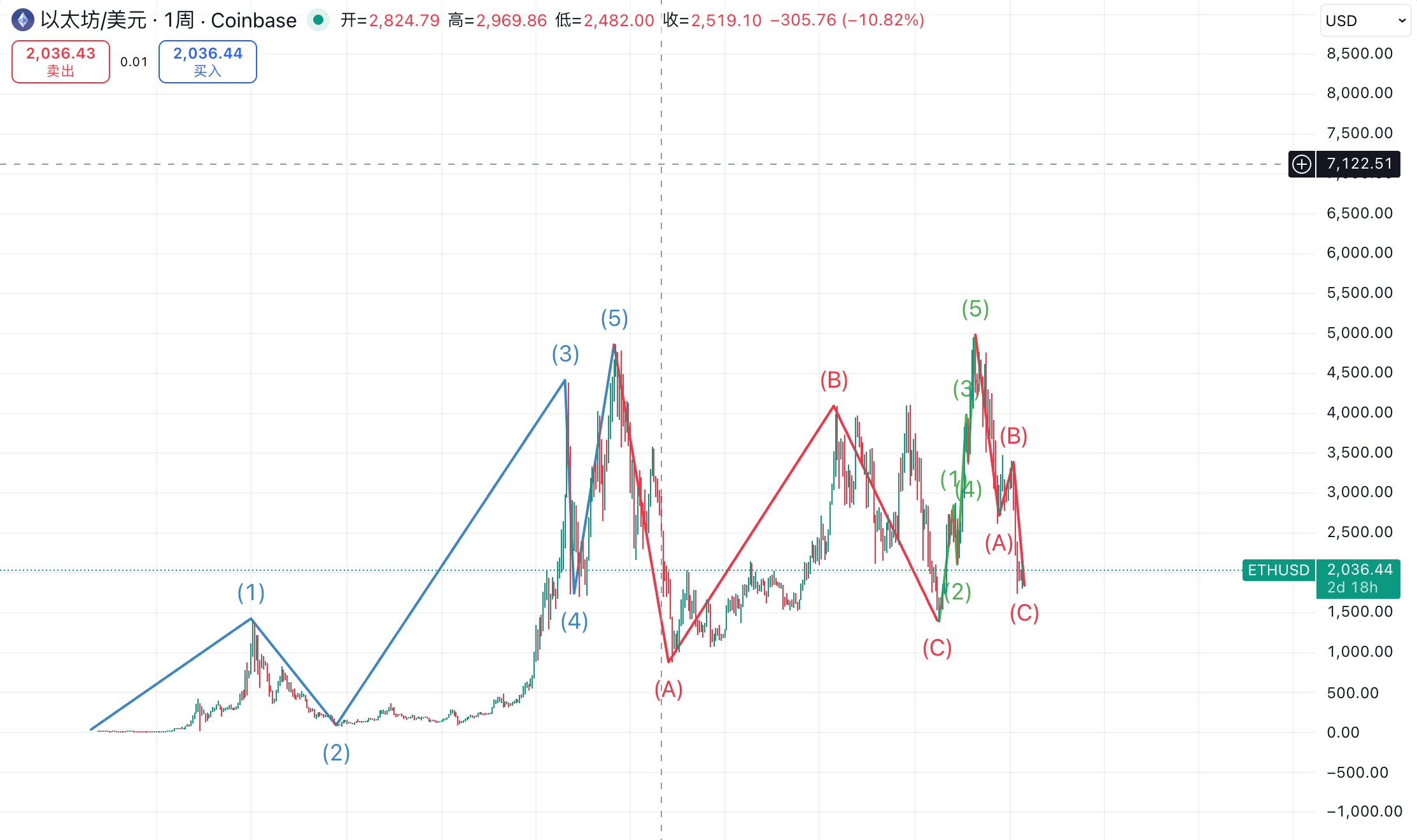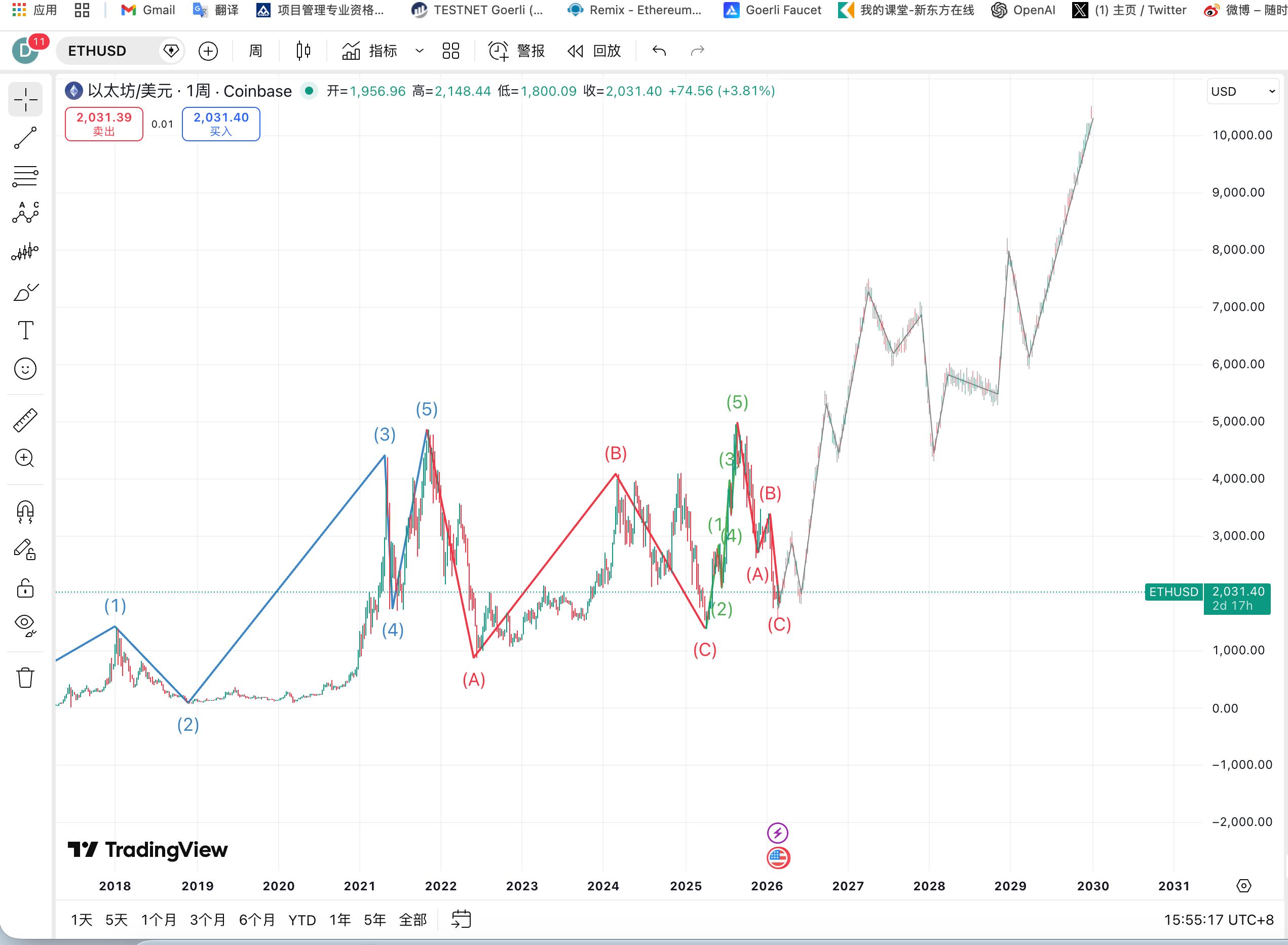 小编总结解释技术面和消息面eth会震荡到2026年6月附近开始上涨在九月开始回调2027年初完成3浪三价格目标在7000U以上