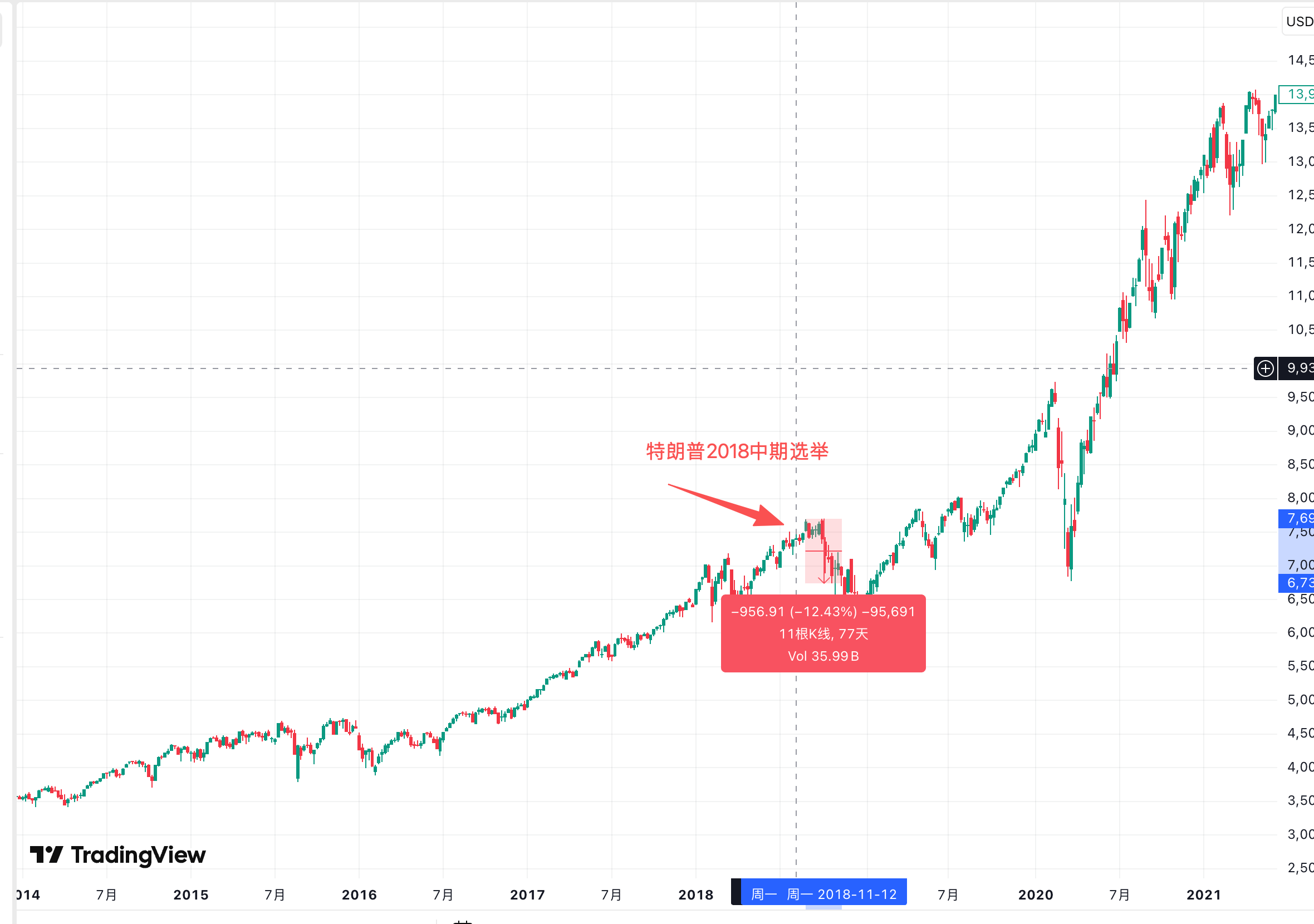 这里面回顾2018的价格曲线,特朗普中期选举输掉了众议院.导致了后面的种种问题包括弹劾.我相信本次特朗普一定会倾尽全力保住大盘.如果剧本重演就是中期选举前的两个月抛售股票就好了