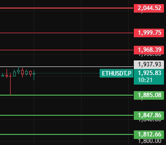 Ethereum dzisiaj zwróć uwagę na 1938, tylko jeśli utrzyma się powyżej tej pozycji przez 1-2 godziny, zacznie się odbicie, zwróć uwagę na opór w pobliżu poziomów 1968-1999-2044!