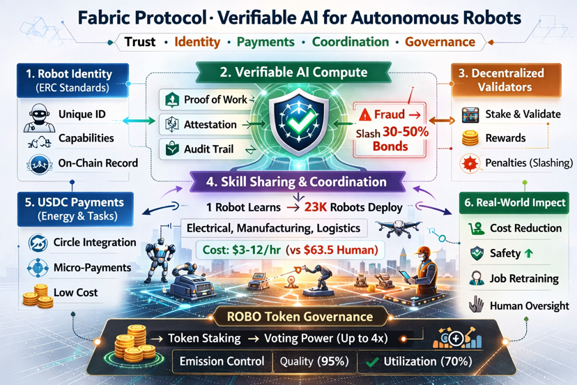 At first I was skeptical. Blockchain for robots sounded like buzzwords. I thought AI needed central control for safety. Then I explored the protocol’s design. It uses verifiable compute. This means robots prove their actions with cryptographic attestations. Validators check the work. They stake bonds. If fraud happens bonds get slashed by 30-50%. This builds accountability. I felt doubt fade. Real trust emerged without a single overseer.