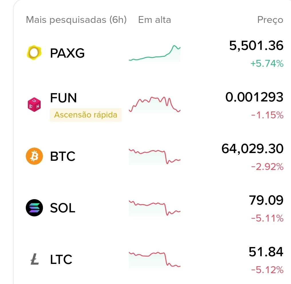 - FUN com tag “Ascensão rápida”: Mesmo com pequena queda de 1,15%, está chamando atenção insana. Low-cap em modo especulativo — volume pode explodir a qualquer momento.