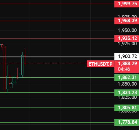 Ethereum w nocy zwróć uwagę na poziom 1900, tylko zamknięcie powyżej tego poziomu przez 1-2 godziny może rozpocząć rebound, zwróć uwagę na opory w pobliżu 1935-1968-2000!