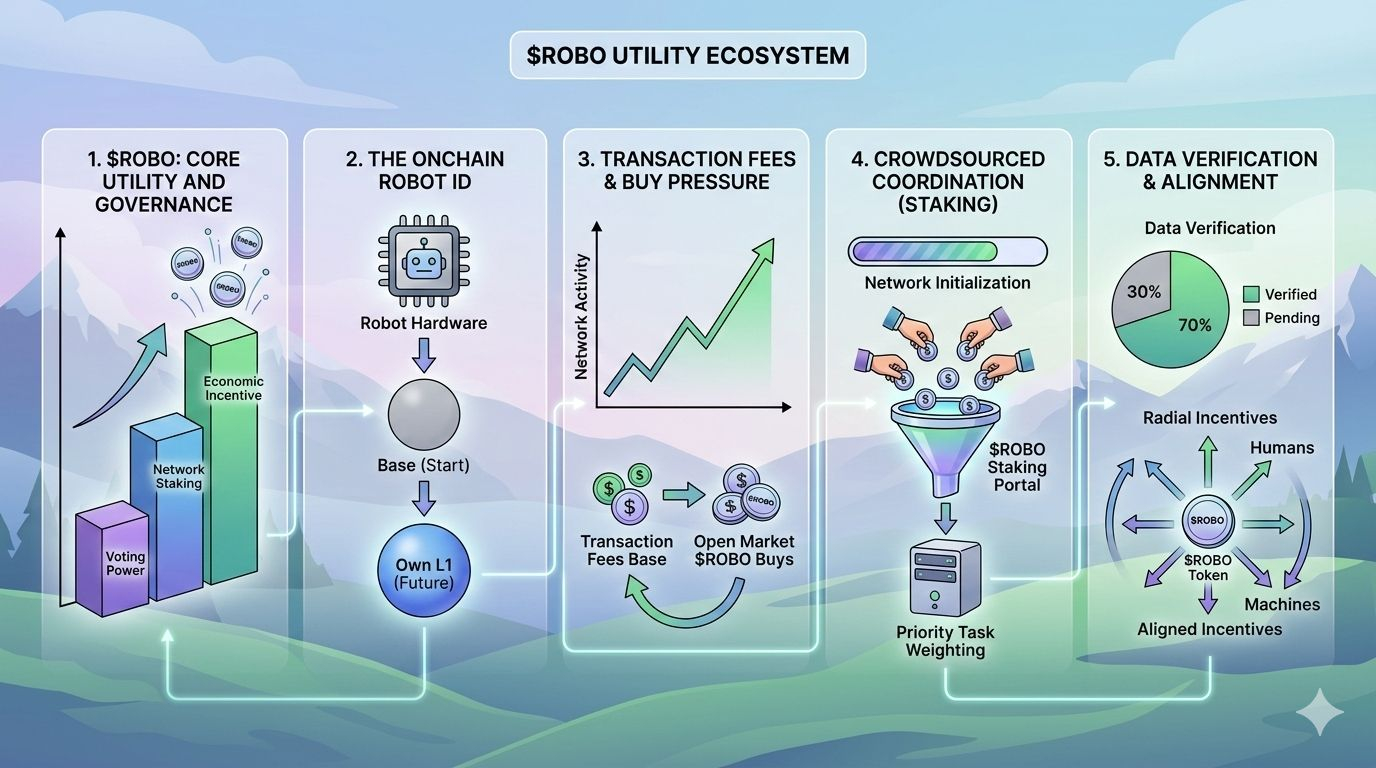Imagine a robot paying for its own electricity or charging station using crypto. It’s giving main character energy. All the network fees for payments, identity, and verification are handled in $ROBO. They’re starting on Base, but the end goal is a whole ass L1 blockchain just for robot activity. If that’s not a glow-up, I don’t know what is. 💅