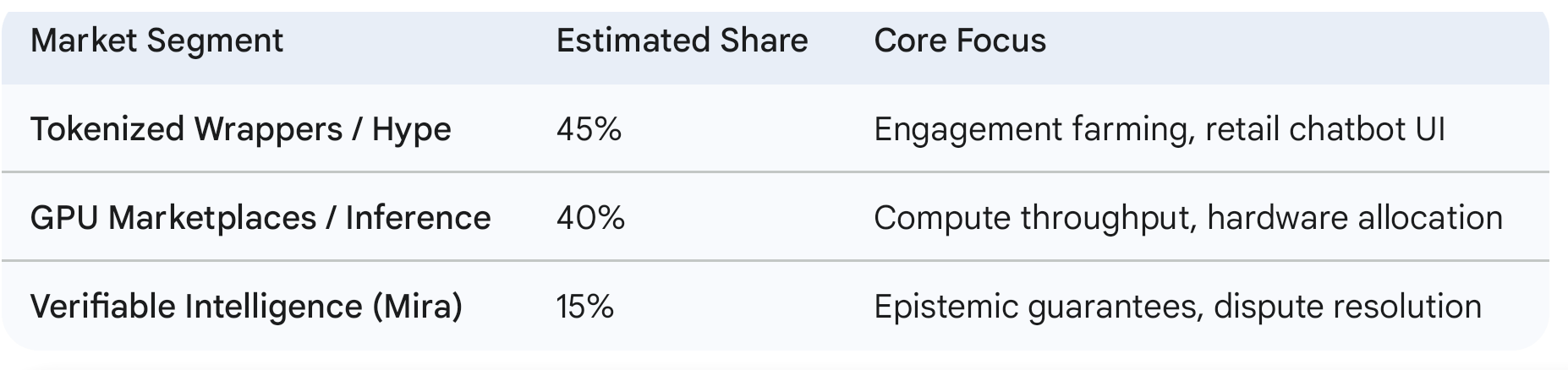 Here’s what makes this interesting from a market structure perspective: Mira doesn’t try to outcompete base models. It sits above them. It decomposes outputs into atomic claims, then routes those claims across independent AI validators. Think of it less like inference and more like dispute resolution. In crypto terms, it feels closer to optimistic rollups than to GPU marketplaces. The claim is assumed valid, but economically challenged and verified through distributed consensus.