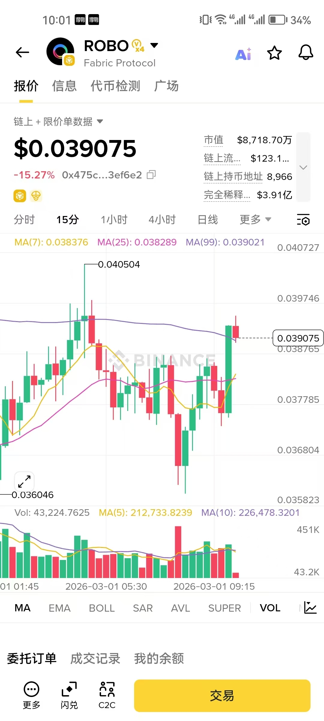 Spójrz na wahania na rynku $ROBO : cena waha się wokół 0.039, a 24-godzinny wolumen obrotu osiągnął aż 150 milionów dolarów