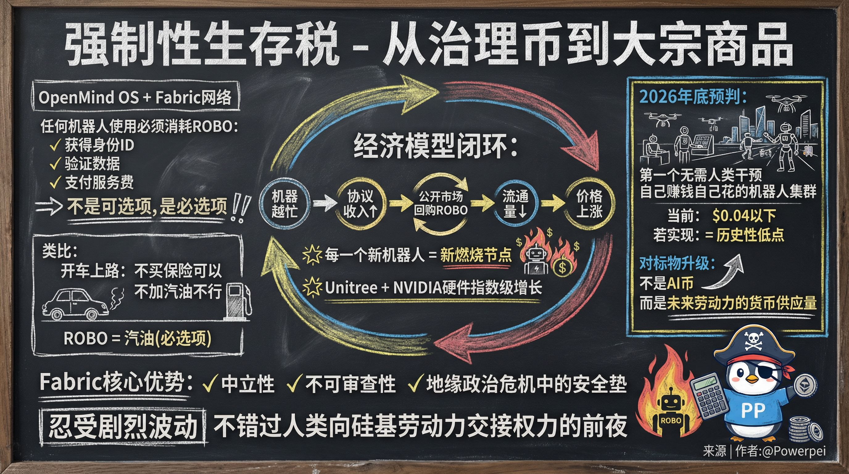 Jeśli pod koniec 2026 roku zobaczymy w rzeczywistości pierwszy zbiornik robotów, który nie potrzebuje ludzkiej interwencji, zarabia i wydaje samodzielnie, to ROBO poniżej $0.04 będzie historycznym dołkiem