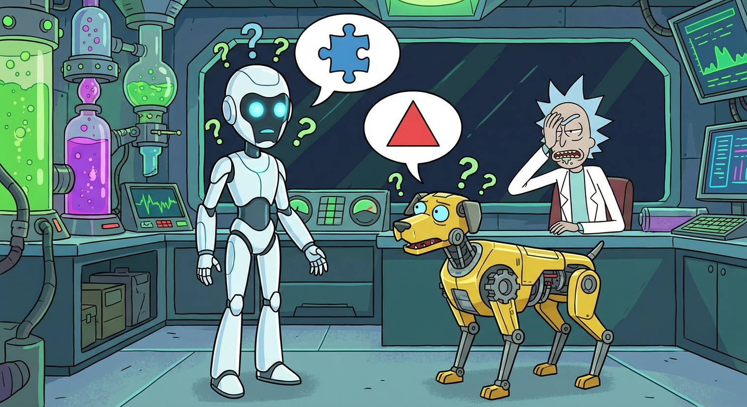 可是!如果你让特斯拉的机器人,去给波士顿动力的机器狗递个扳手,它俩大概率会大眼瞪小眼,直接宕机。😳