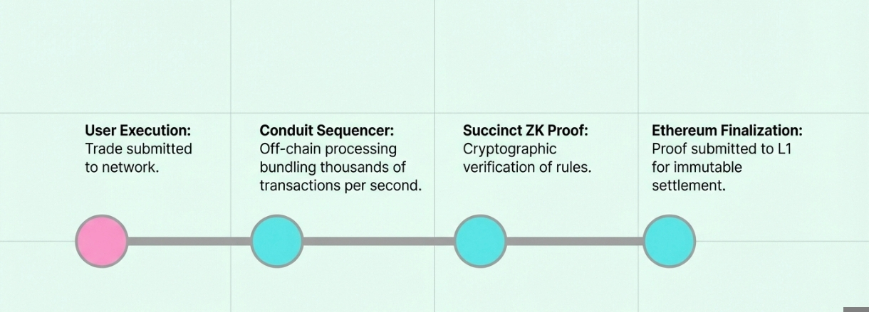 Off-Chain Processing: Katana's sequencer (operated by Conduit) processes thousands of these transactions per second off-chain, bundling them together.