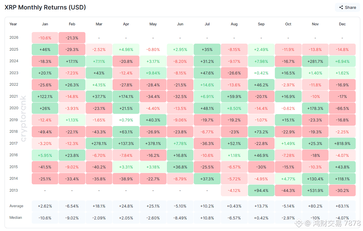 Seasonality data shows that over the past 12 years, March has delivered an average 18% return for XRP. This makes it statistically the strongest month in the first quarter.