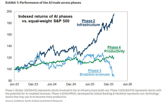 Зараз ринок працює за принципом "Show me the money". Якщо NVDA показує реальні продажі чипів (Phase 2), то від CRM чи ADBE (Phase 3) вимагають доказів, що клієнти готові платити за AI-додатки.