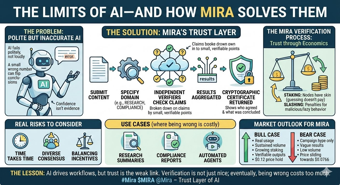 The lesson is simple: AI will drive workflows, but the weak link won’t be generation—it’ll be trust. Mira bets verification becomes a standard primitive, not because it’s nice, but because eventually, being wrong costs too much.