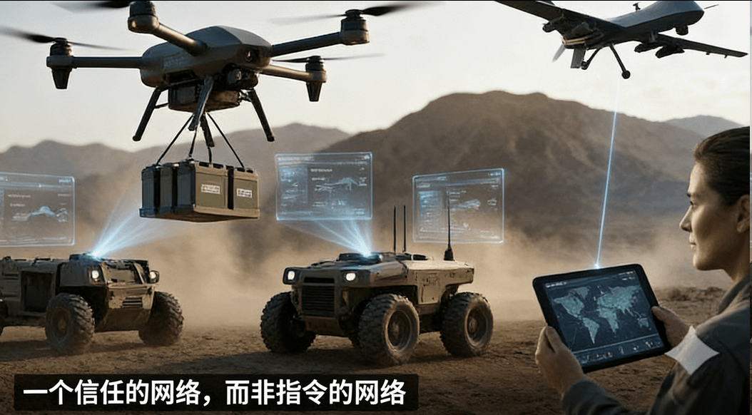 自主防御系统、被算法调度的后勤网络。人类在后面,机器在前线。