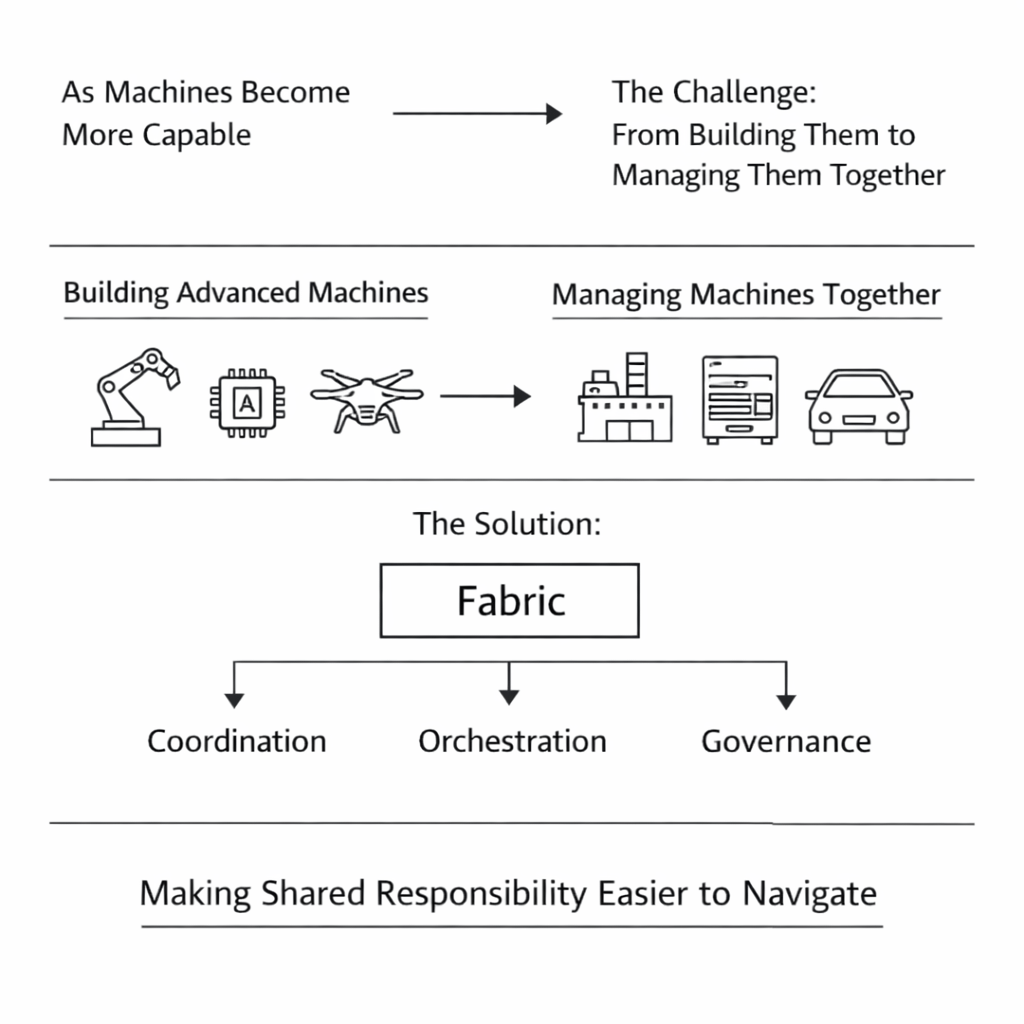 I don’t know whether Fabric will become foundational infrastructure or remain a specialized layer used in certain sectors. Both outcomes are possible. But I do sense that the problem it addresses is real. As machines become more capable, the challenge shifts from building them to managing them together. Fabric is an attempt to prepare for that shift, not by predicting the future, but by making shared responsibility easier to navigate.
