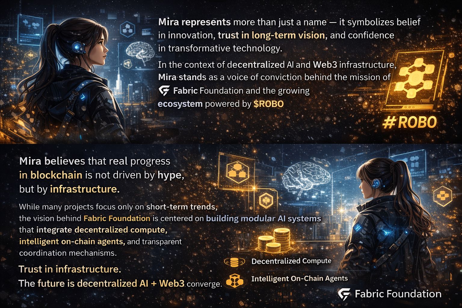 For Mira, decentralized AI is not just a trending topic. It represents a structural shift in how intelligence, automation, and blockchain can integrate. Instead of centralized AI systems controlled by a few entities, the vision behind #robo supports modular, transparent, and community-aligned infrastructure. This means decentralized compute, intelligent on-chain agents, and programmable coordination mechanisms working together under a unified incentive layer.