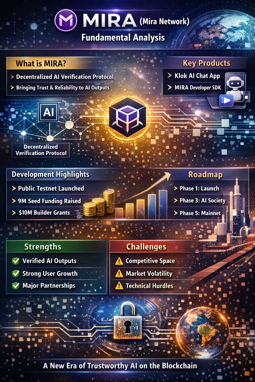 $MIRA (by @Mira - Trust Layer of AI Mira Network) is a blockchain-based decentralized protocol designed to bring a “trust layer” to artificial intelligence outputs — ensuring that AI results are independently verified and therefore more reliable and factual. Unlike traditional AI systems that deliver answers without verification, Mira routes outputs through many independent models and derives consensus on correctness before passing a claim as verified. �