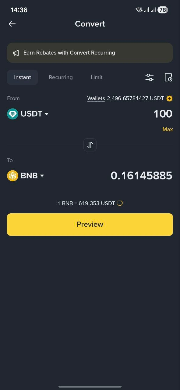Trước đây mỗi lần muốn đổi từ USDT sang $BNB hay chuyển profit từ altcoin về stablecoin, tôi hay vào spot đặt lệnh.