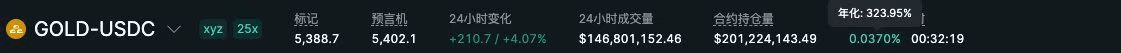 于是 crypto 这边的人直接在链上提前下注用时间差去**price-in 周一开盘可能出现的黄金上涨。**Hyperliquid 和币安上的 Gold 就这样被先买起来了,溢价也就被硬生生拉了出来。