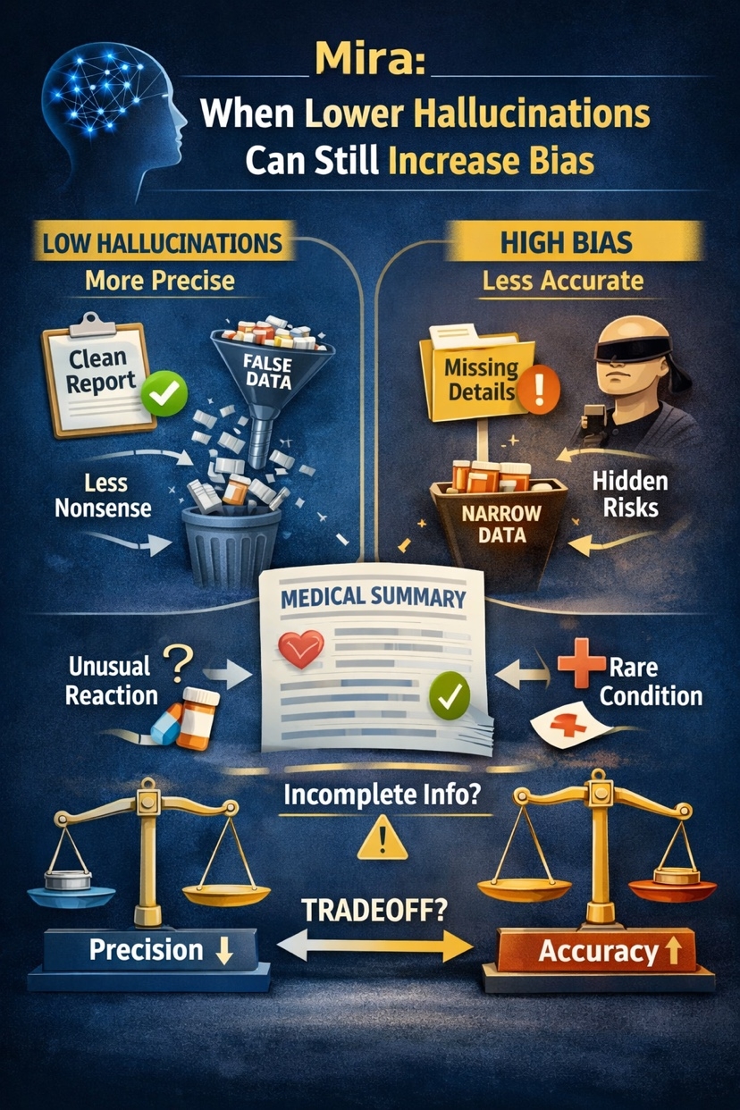 I keep circling back to one uncomfortable question.When an AI answer looks cleaner, safer, and more confident, is it actually getting better, or just narrower?@Mira - Trust Layer of AI $MIRA #Mira That is the part of the Mira thesis that caught my attention. Not the broad “AI trust layer” pitch. The more interesting claim is deeper: hallucination and bias are not two separate bugs you can patch one by one. Mira’s whitepaper argues they are linked through a training dilemma. In its framing, hallucinations are a precision problem, while bias is an accuracy problem. Push hard on one side and the other side can get worse.