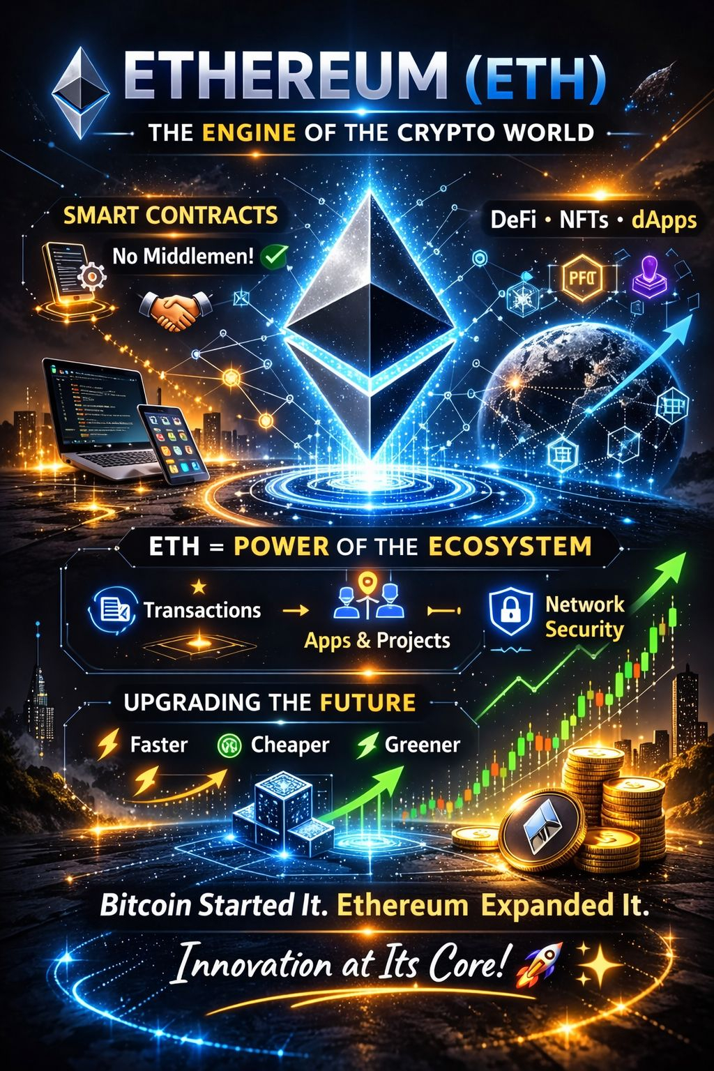 Ethereum has also been evolving. Network upgrades aim to make it faster, more efficient, and more environmentally friendly 🌱. This constant development is why many people see Ethereum as a long-term technology play, not just a short-term market asset.