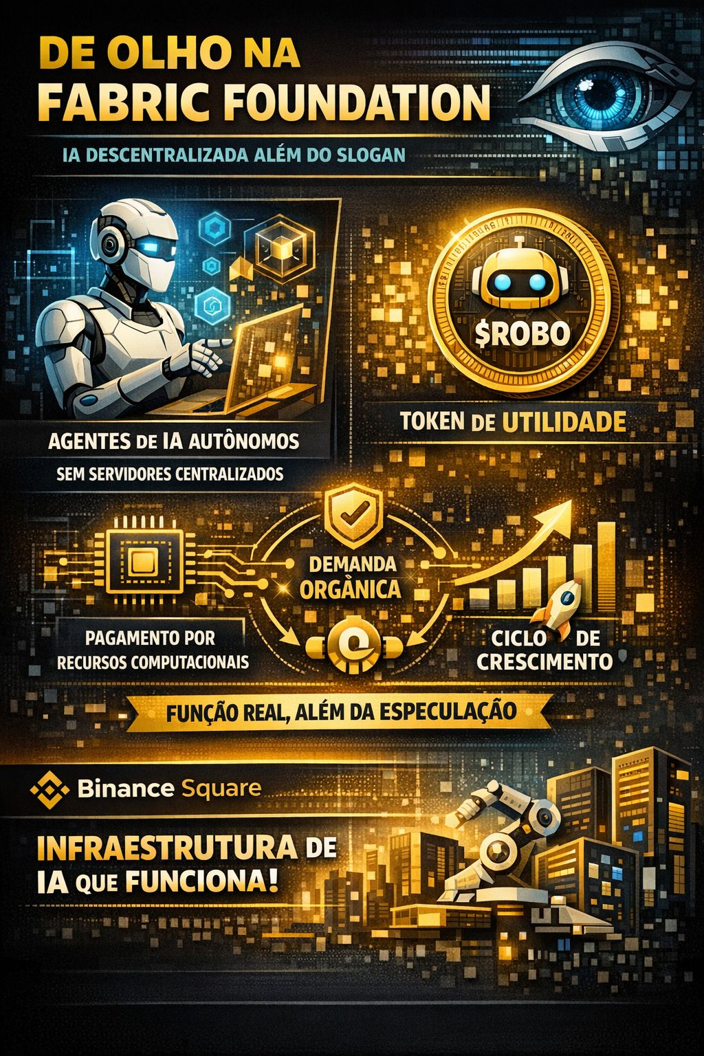 A maioria dos projetos fala em "IA + blockchain" como se fosse slogan. O $ROBO vai além disso. A Fabric Foundation está criando uma infraestrutura onde agentes de IA podem operar de forma autônoma, com incentivos econômicos reais, sem depender de servidores centralizados de uma Big Tech.