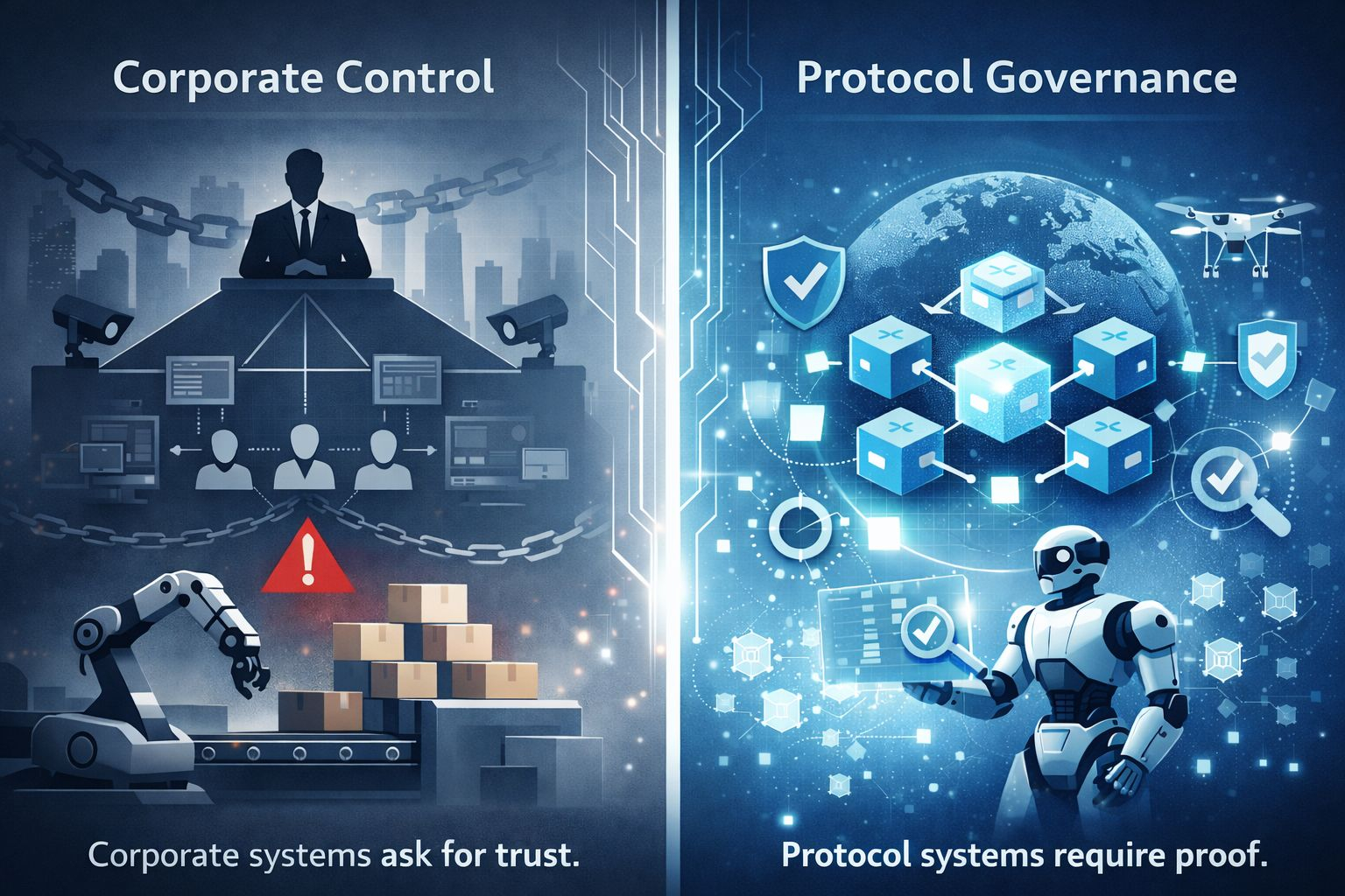As robots and intelligent agents begin coordinating supply chains, infrastructure and economic activity, governance becomes a power question. In corporate-controlled systems, a single entity defines the rules, updates the safeguards, and ultimately decides what is permitted. That model creates efficiency but it also creates dependency and opacity.