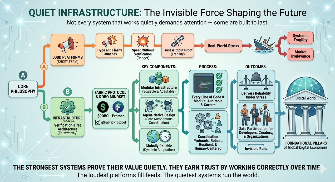 That’s why the work behind @Fabric Foundation — the team at Fabric Foundation — is so critical. Its verification-first architecture, modular infrastructure, and agent-native design ensure every operation — human or autonomous — is provable, auditable, and globally reliable. These systems are not built to impress the crowd; they are built to endure and perform under pressure.