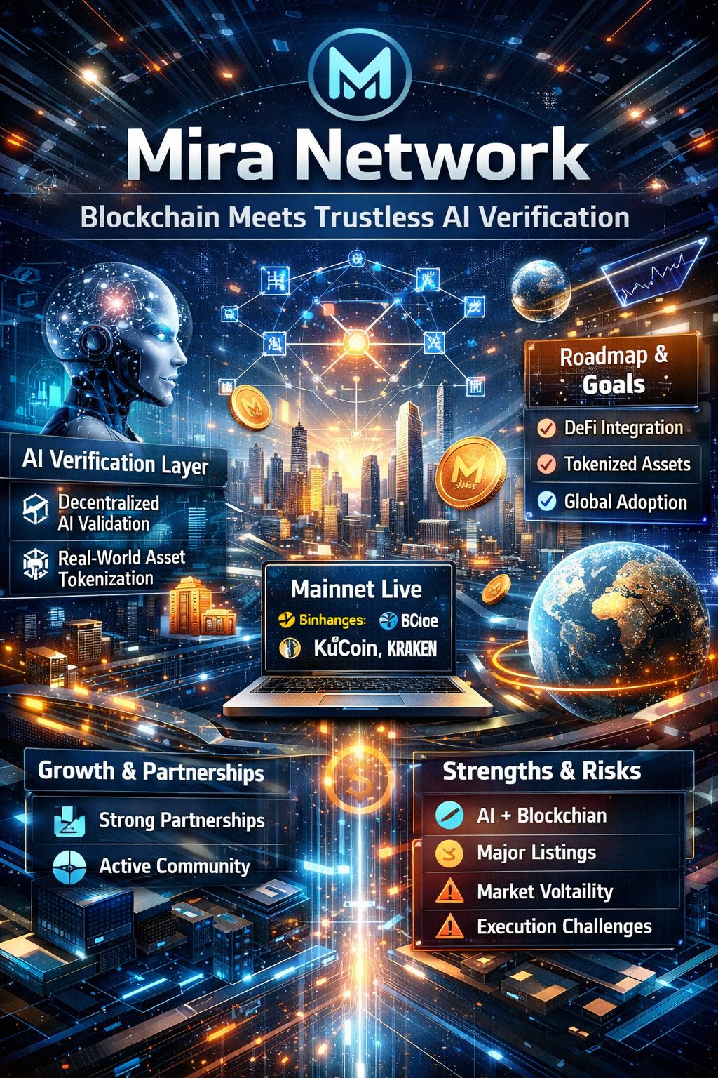 $MIRA (@Mira - Trust Layer of AI ) Network is a blockchain project that blends decentralized technology with AI verification and real-world asset tokenization. Instead of just being another token, its vision centers on creating trust and reliability in AI outputs and blockchain applications — an increasingly discussed problem in the crypto and AI space.