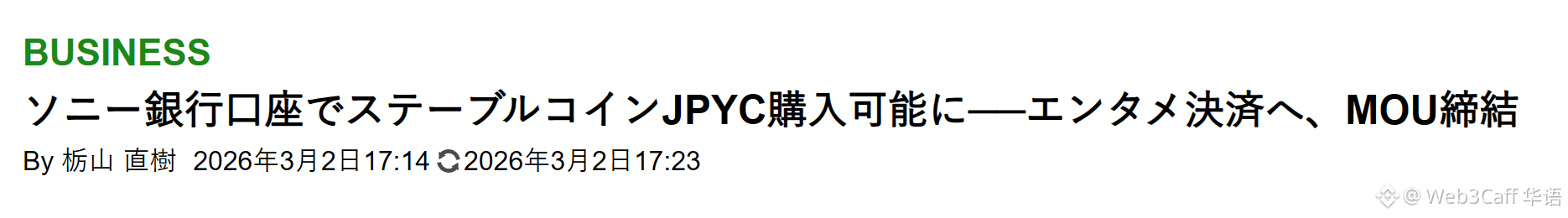 索尼银行与 JPYC 达成合作