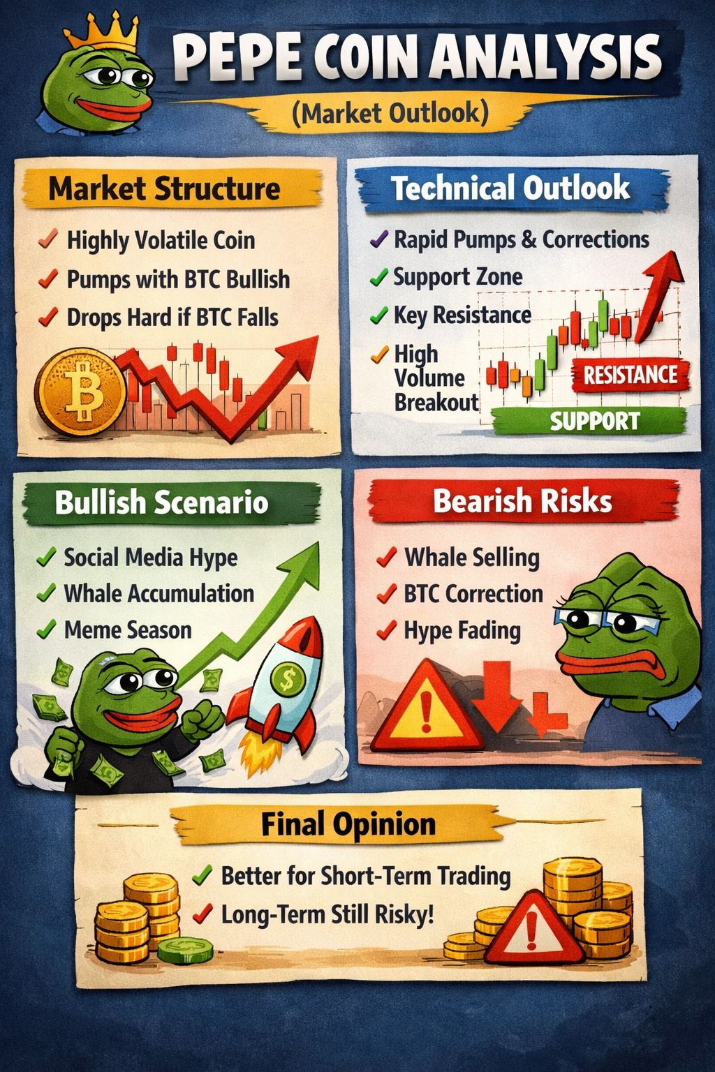 PEPE is better suited for short-term trading. Long-term holding remains risky unless it develops strong real utility.