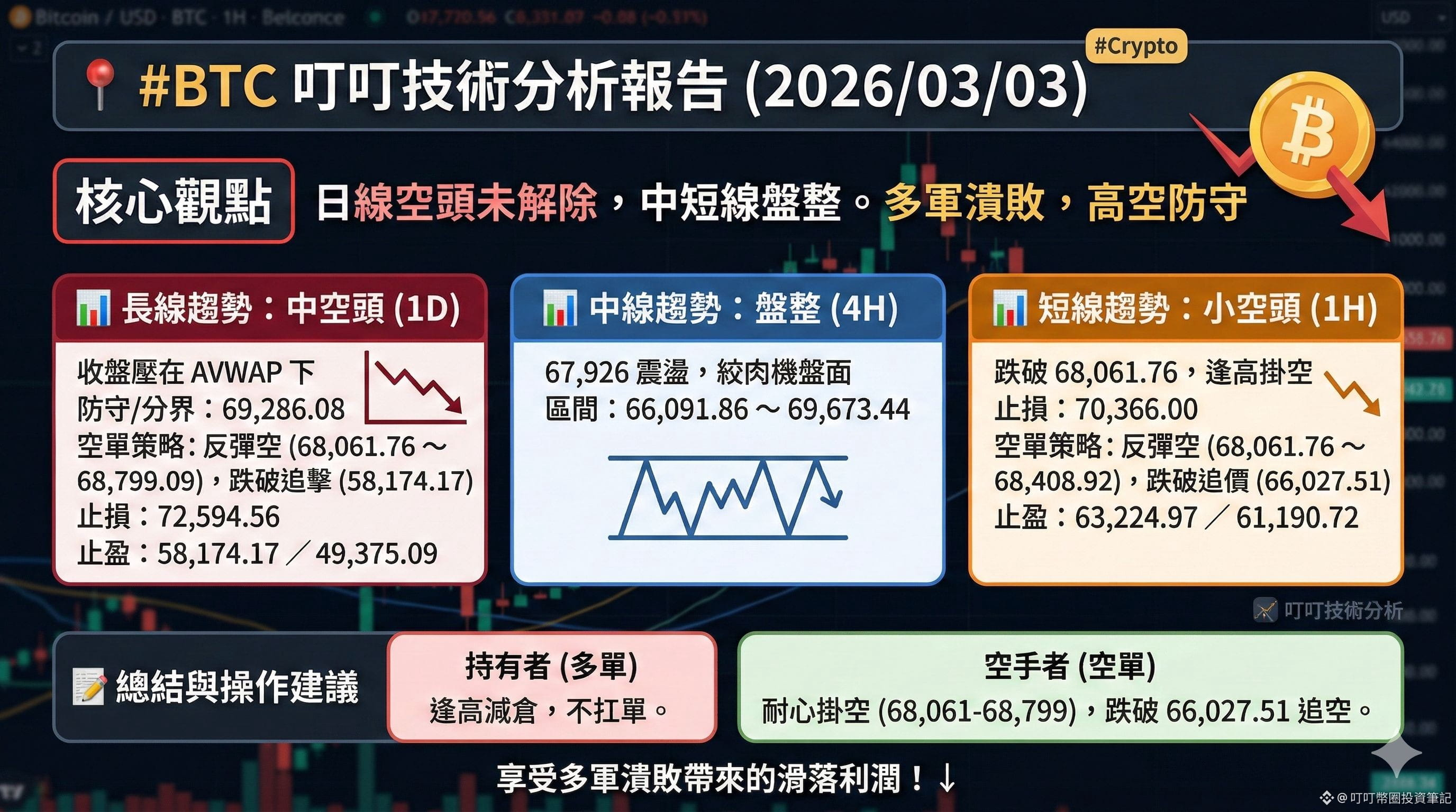 • 反彈空 (掛單):68,061.76 ~ 68,408.92 (建議資金 60%)