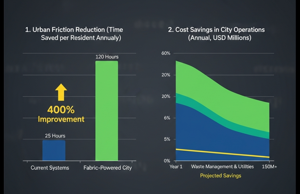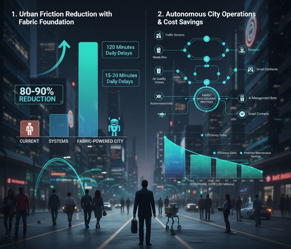 With Fabric, the city becomes a living fabric of verifiable data. Traffic lights can adjust in real-time based on data verified by autonomous vehicles; waste bins can signal for collection only when full, with payments to contractors handled instantly. This reduces "urban friction," turning city management from a reactive nightmare into a proactive, automated service.